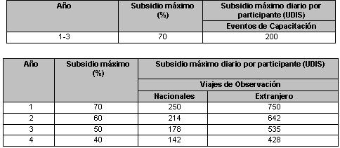 Dichas empresas deberán estar habilitadas por FIRA o certificadas por un organismo calificador aceptado por FEGA. El monto máximo del subsidio será del 70% de los gastos, sin que exceda de 2,800 UDIS por mes.