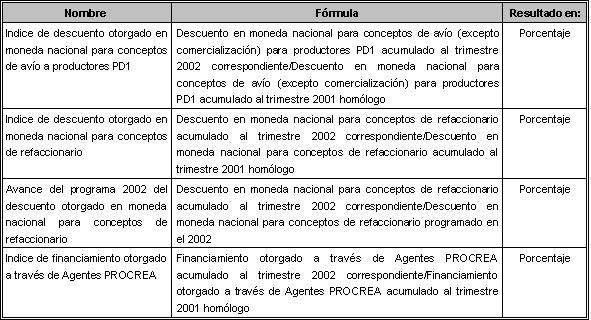 En cumplimiento a lo dispuesto en el artículo 63 del Decreto de Presupuesto de Egresos de la Federación para el Ejercicio Fiscal 2002, publicado en el Diario Oficial de la Federación del 1o. de enero de 2002, a continuación se presentan los Indicadores de Evaluación para el presente ejercicio fiscal de los programas a través de los cuales se canalizan subsidios los Fideicomisos Instituidos en Relación con la Agricultura (FIRA), los cuales se enviarán de manera trimestral a la Secretaría de Hacienda y Crédito Público y a la Cámara de Diputados.