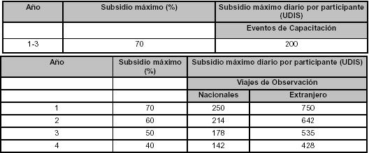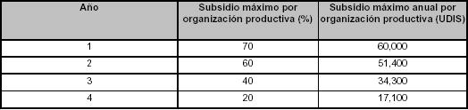 El Subsidio se otorgará por un periodo de hasta tres aņos por productor incorporado a la Innovación Tecnológica,
