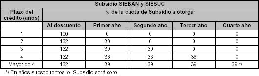 que otorgan Subsidios a través de una tasa de interés preferencial,