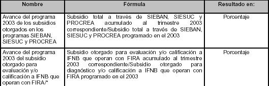 En cumplimiento a lo dispuesto en el artículo 54 del Decreto de Presupuesto de Egresos de la Federación para el Ejercicio Fiscal 2003, publicado en el Diario Oficial de la Federación del 30 de diciembre de 2002, a continuación se presentan los Indicadores de Evaluación para el presente ejercicio fiscal de los programas que canalizan subsidios, los cuales se enviarán de manera trimestral a la Secretaría de Hacienda y Crédito Público y a la Cámara de Diputados.