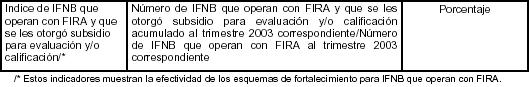 X.1. En cumplimento a lo dispuesto en el artículo 54 del Presupuesto de Egresos de la Federación para el Ejercicio Fiscal 2003, los beneficios y la efectividad de los programas de FIRA que canalizan Subsidios serán evaluados mediante indicadores que medirán la evolución de los programas con Subsidio de FIRA, los cuales serán sancionados por una institución académica o de investigación de reconocido prestigio.