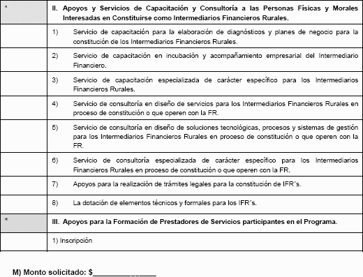 II. Apoyos y Servicios de Capacitación y Consultoría a las Personas Físicas y Morales Interesadas en Constituirse como Intermediarios Financieros Rurales: