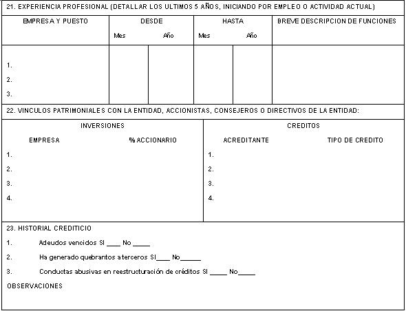 CUARTA.- Tratándose de la comprobación de la experiencia en materia financiera, legal o administrativa y, en su caso, del prestigio profesional, las Entidades Financieras tomarán en cuenta, el desempeņo en puestos de alto nivel de decisión durante por lo menos cinco aņos.