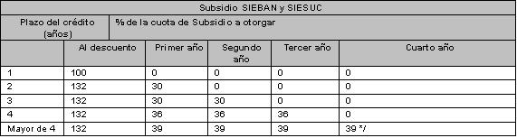 Los Subsidios SIEBAN, SIEBAN ESPECIAL y SIESUC no serán aplicables para créditos reestructurados y los destinados a la actividad de comercialización (a excepción de Financiamiento Rural).