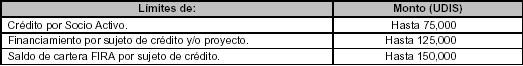 IX.3.3. Monto máximo de crédito por Socio Activo. Los sujetos de crédito elegibles podrán recibir financiamiento de acuerdo con lo siguiente: