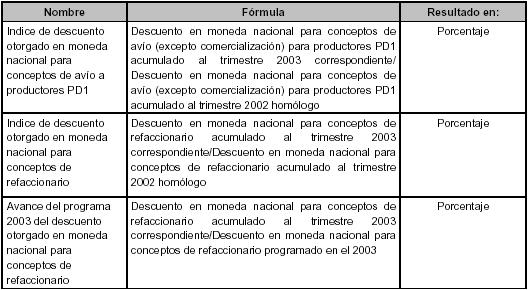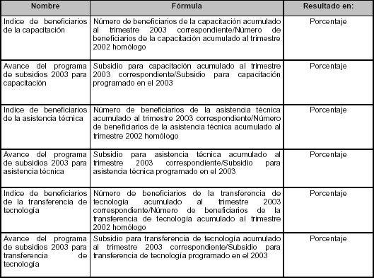 En cumplimiento a lo dispuesto en el artículo 54 del Decreto de Presupuesto de Egresos de la Federación para el Ejercicio Fiscal 2003, publicado en el Diario Oficial de la Federación del 30 de diciembre de 2002, a continuación se presentan los Indicadores de Evaluación para el presente ejercicio fiscal de los programas que canalizan subsidios, los cuales se enviarán de manera trimestral a la Secretaría de Hacienda y Crédito Público y a la Cámara de Diputados.