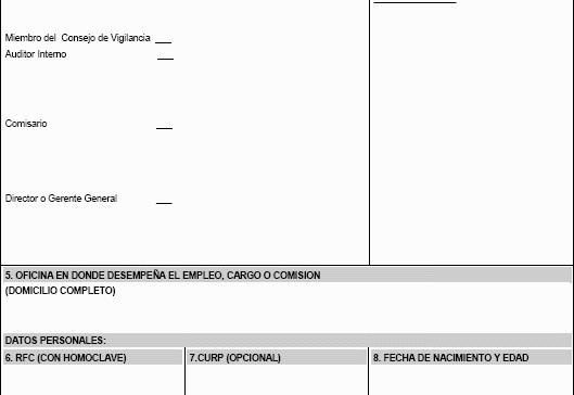 QUINTA.- Las personas designadas como consejeros, miembros del Consejo de Vigilancia o Comisario, Director o Gerente General, miembros del Comité de Supervisión, Contralor Normativo y Auditor Interno, deberán manifestar por escrito y bajo protesta de decir verdad a la Entidad, Federación o Confederación, según corresponda: