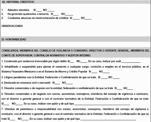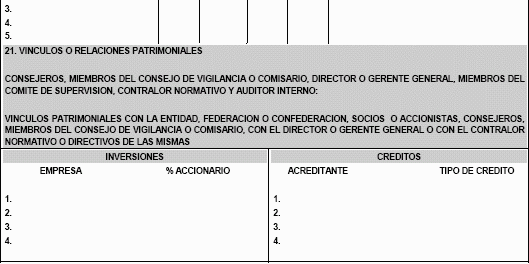 SEXTA.- Las Entidades, Federaciones y Confederaciones, deberán integrar por cada consejero, Director o Gerente General, miembro del Comité de Supervisión, miembro del Consejo de Vigilancia o Comisario, Contralor Normativo y Auditor Interno, un expediente que contendrá la documentación e información a que se refieren las Reglas Segunda, Cuarta, Quinta y Séptima.