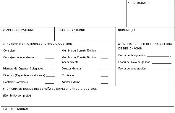 DECIMA.- Las Entidades Financieras deberán informar a la Vicepresidencia Jurídica de la Comisión Nacional Bancaria y de Valores, sita en Insurgentes Sur 1971, torre Norte, piso 11, colonia Guadalupe Inn de esta ciudad y a la Vicepresidencia encargada de la supervisión de la Entidad Financiera de que se trate, los nombramientos de consejeros, Miembros de Comité Técnico, Miembros de Organos Colegiados, Contralor Normativo, director general, Directivos y comisarios, según sea el caso, dentro de los cinco días hábiles posteriores a su designación, manifestando expresamente que los mismos cumplen con los requisitos y condiciones establecidos en la legislación aplicable y en las presentes Reglas, adjuntando, en sobre cerrado de manera impresa y en disquete, la información que se detalla en el formato que se acompaņa como anexo 1.